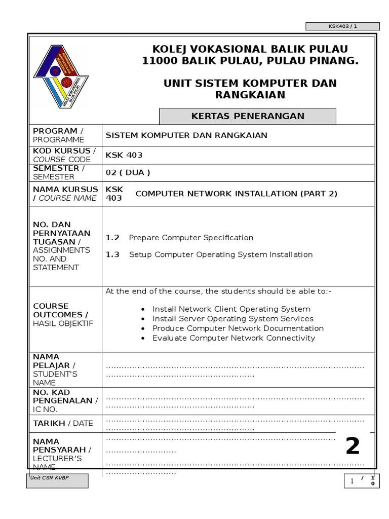 Kolej Vokasional Balik Pulau 11000 Balik Pulau Pulau Pinang Unit Sistem Komputer Dan Rangkaian