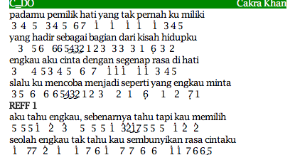Not Angka Dan Lirik Lagu Populer Not Angka Pianika Lagu Cakra Khan Kekasih Bayangan