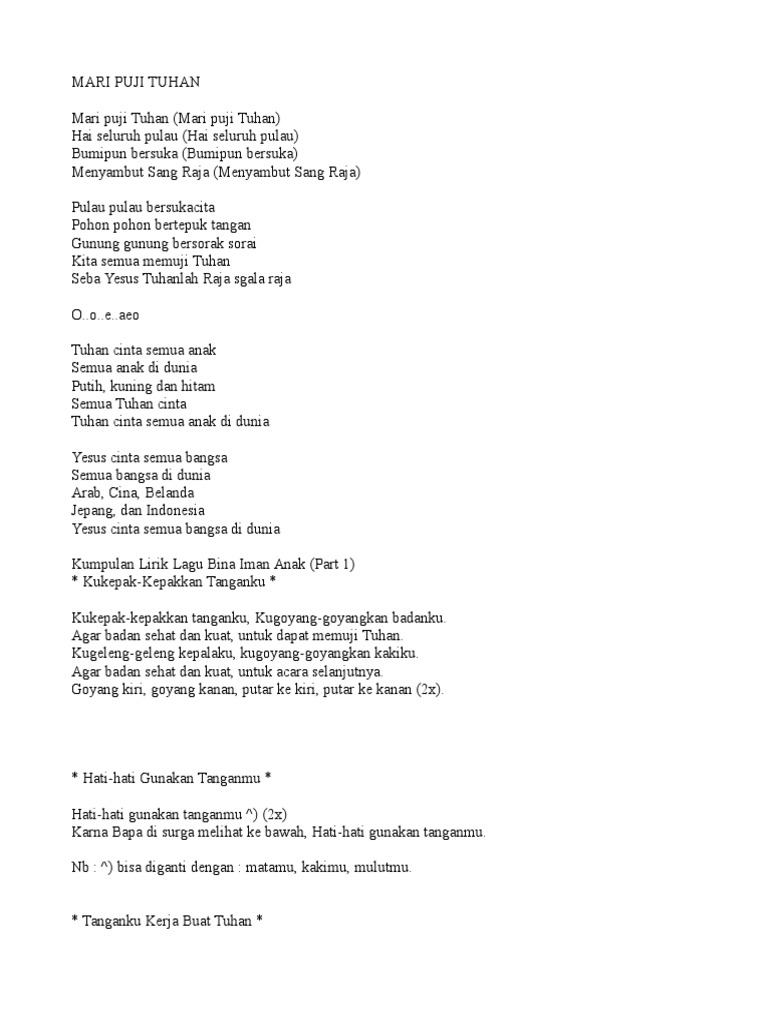 Lirik Lagu Pujian Rohani Kristen Sekolah Minggu Gereja Tuhan Yesus Hati Hati Gunakan Tanganmu