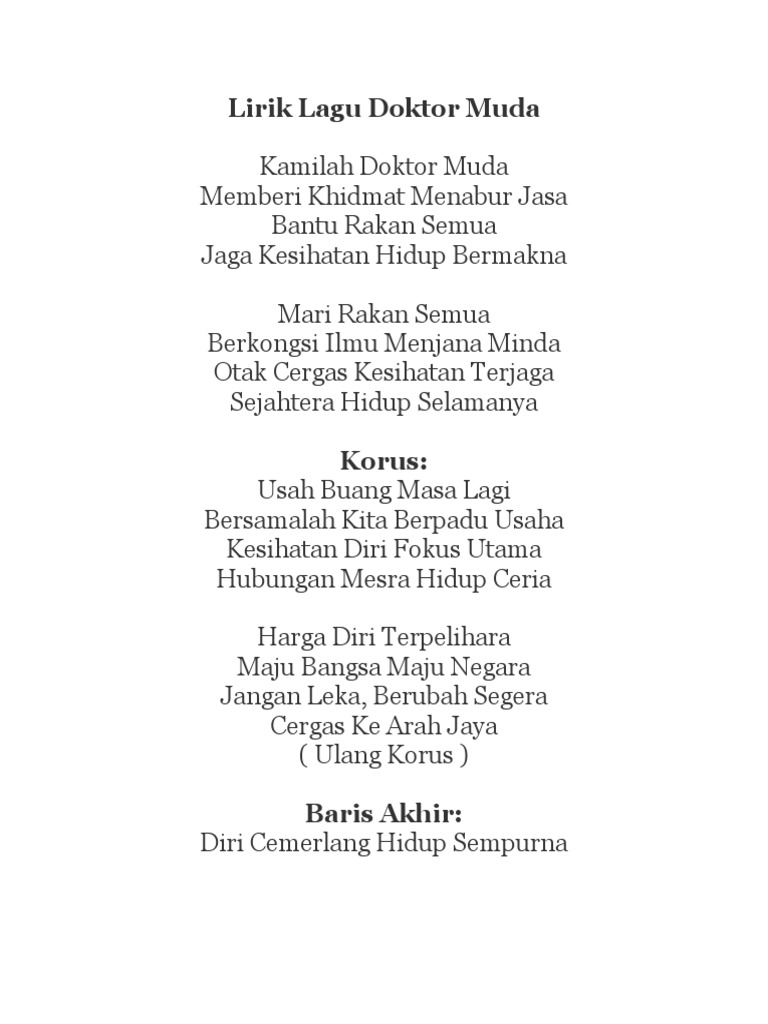 Lirik Lagu Kelab Doktor Muda Docx