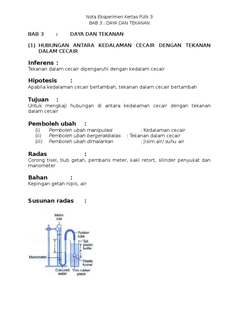 Bab 3 Mengukur Tekanan Kedalaman Cecair