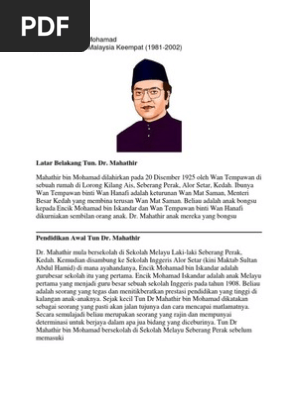 Dr Mahathir Latar Belakang Tun Dr Mahathir Bin Mohamad Yang Juga Digelar Sebagai Dr M Dan Nama Penanya Che Det Dilahirkan Pada 20 Disember 1925 Di Course Hero