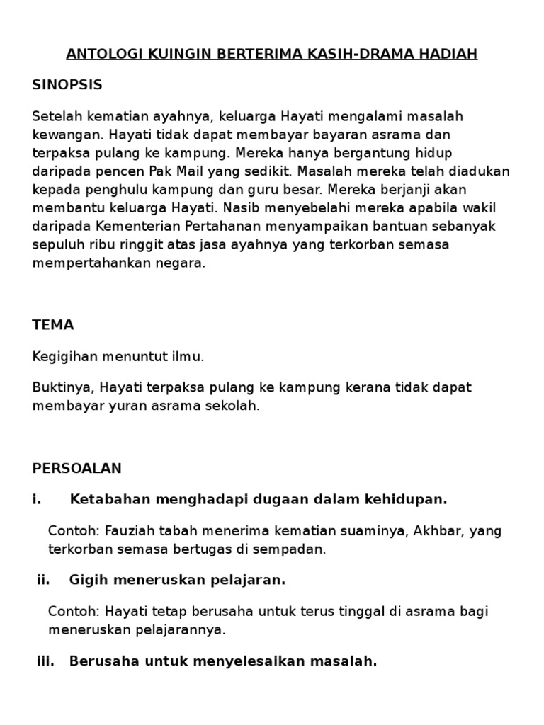 Antologi Kuingin Berterima Kasih Drama Hadiah