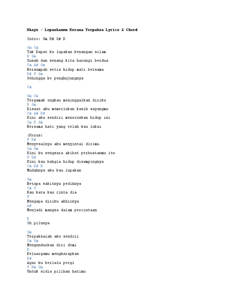 Ukays Lepaskanmu Kerana Terpaksa Lirik Chords Chordify
