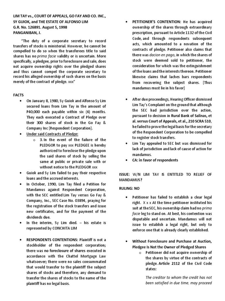 Lim Tay Vs Ca Foreclosure Complaint