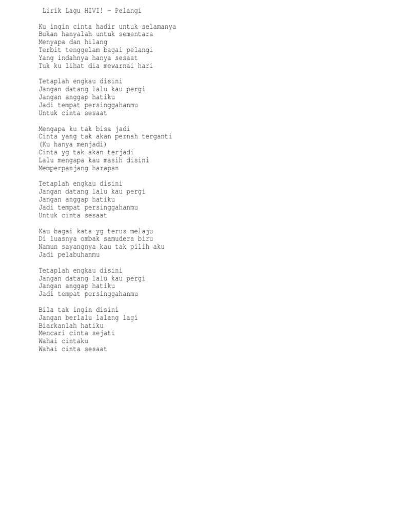 Tag Lirik Lagu Pelangi Hivi Chord Kunci Gitar Dan Lirik Lagu Pelangi Hivi Terbit Tenggelam Bagai Pelangi Tribun Solo