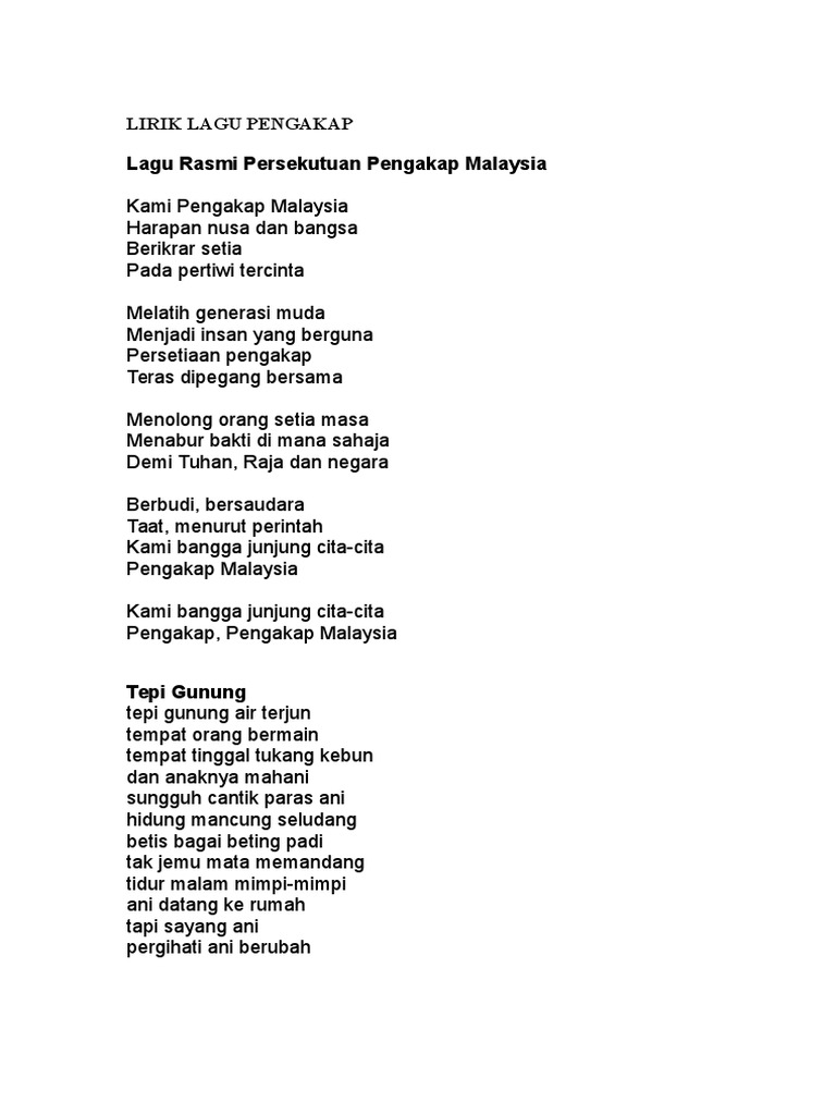 Lirik Lagu Pengakap Malaysi1 Free Photos