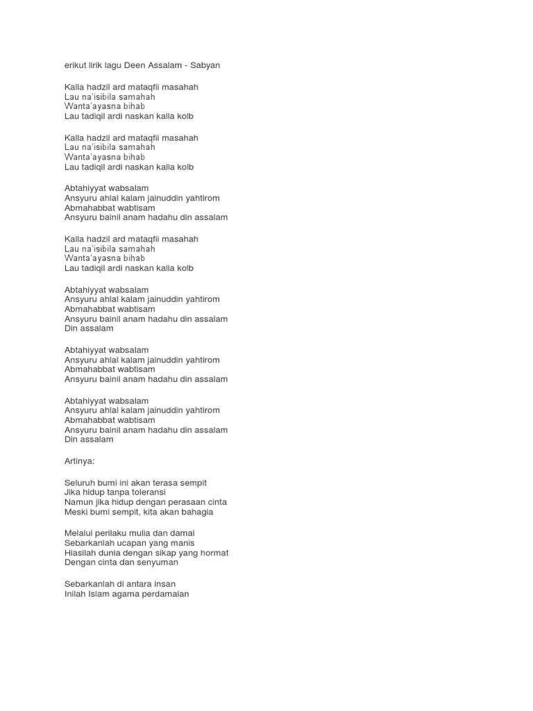Lirik Lagu Deen Assalam Arab Latin Dan Terjemahan Indonesia Cirebon Bersholawat