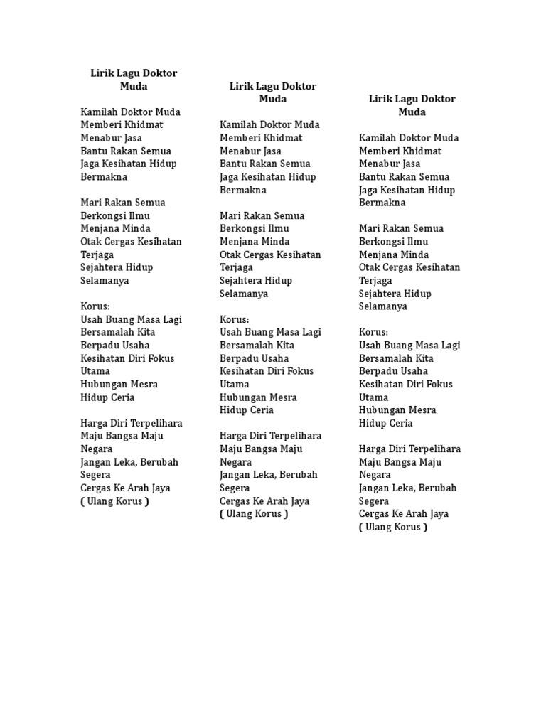 Lirik Lagu Doktor Muda Docx Document