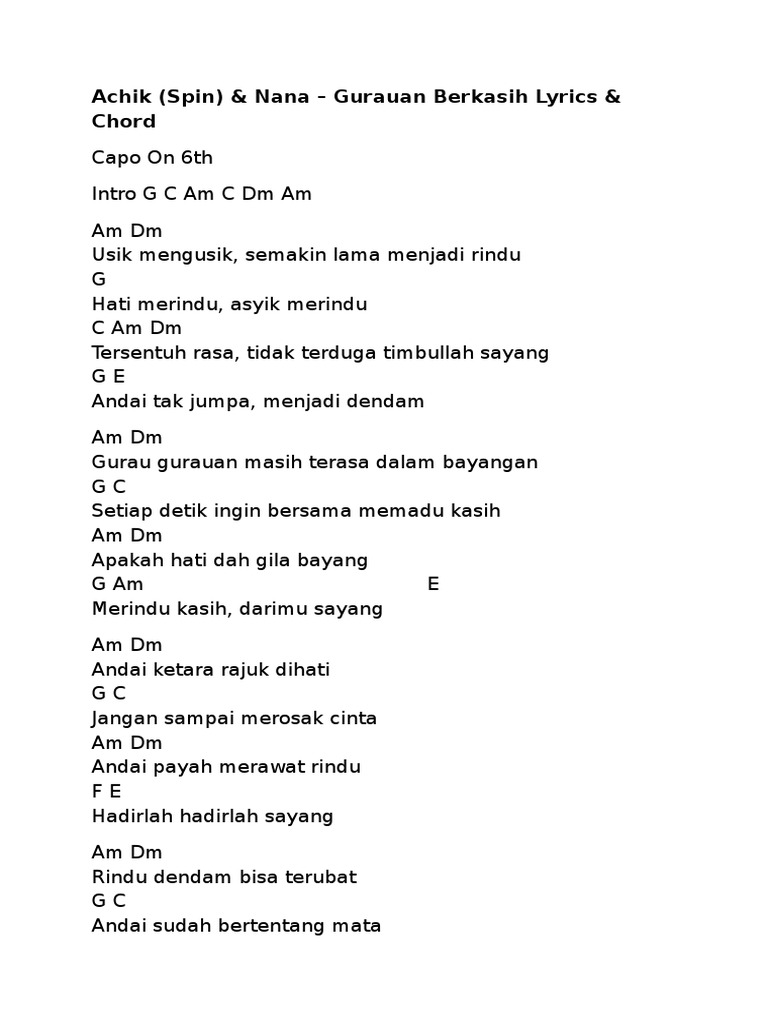 Chord Resipi Berkasih Achik Spin Dan Siti Nordiana By Joe Satria Issuu