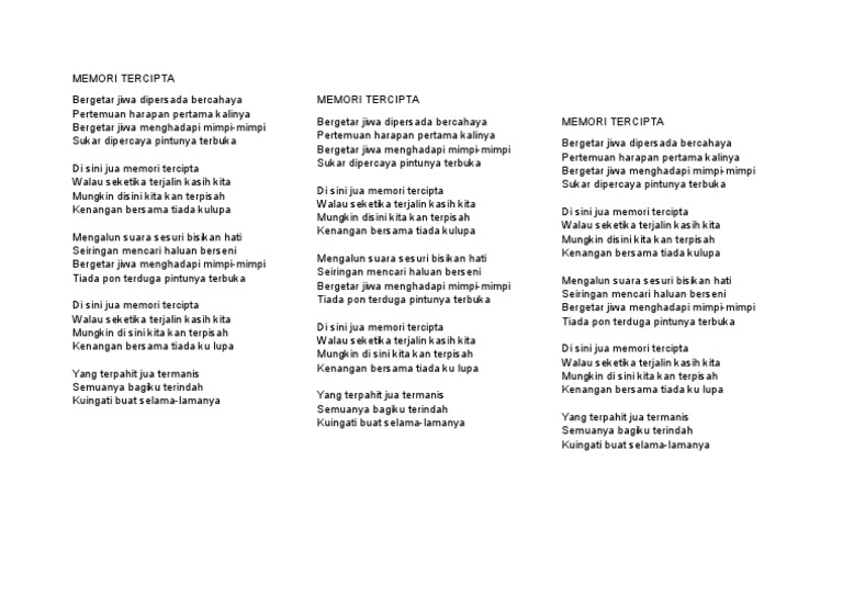 Lirik Lagu Memori Tercipta