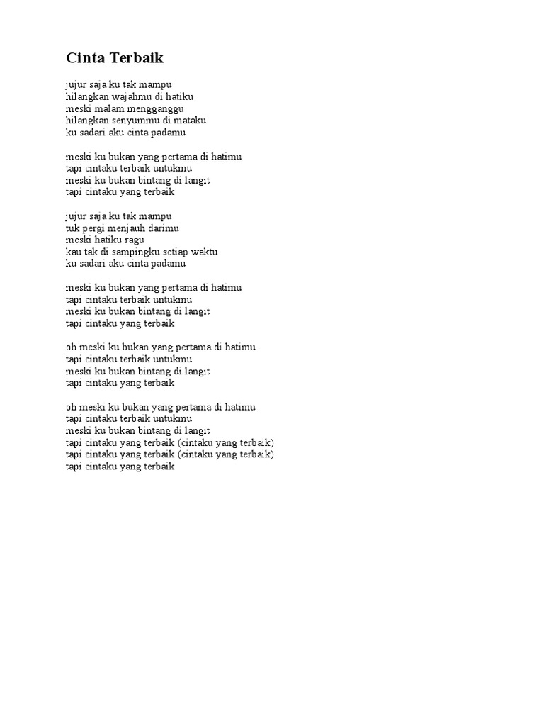 Doc Lirik Lagu Cinta Terbaik Cassandra Nur Laili Academia Edu