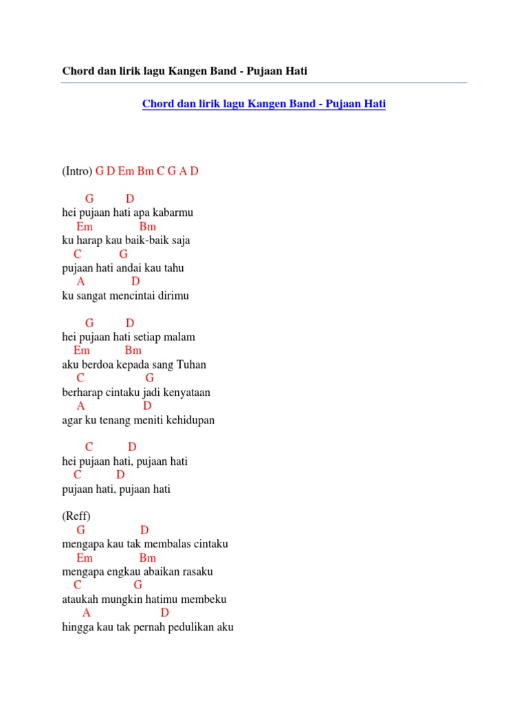 Lirik lagu pujaan hati. Lirik pujaan hati dari kangen band ini dipublikasikan pada tanggal 22 april 2009 11 tahun yang lalu belum ada info detil tentang single ini. Berikut cuplikan syair nyanyian teks lagunya berharap cintaku jadi kenyataan pujaan hati pujaan hati reff. Enjoy the videos and music you love upload original content and share it all with friends family and the world on youtube.