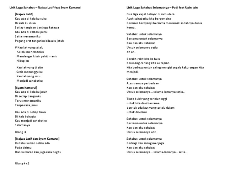 Lirik Lagu Sahabat Najwa Latif Feat Syam Kamarul