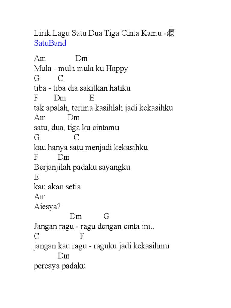 Lirik Lagu Satu Band Satu Dua Tiga Cinta Kamu