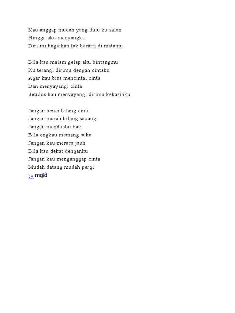 Lirik Lagu Sayang Tolong Jangan Marah2