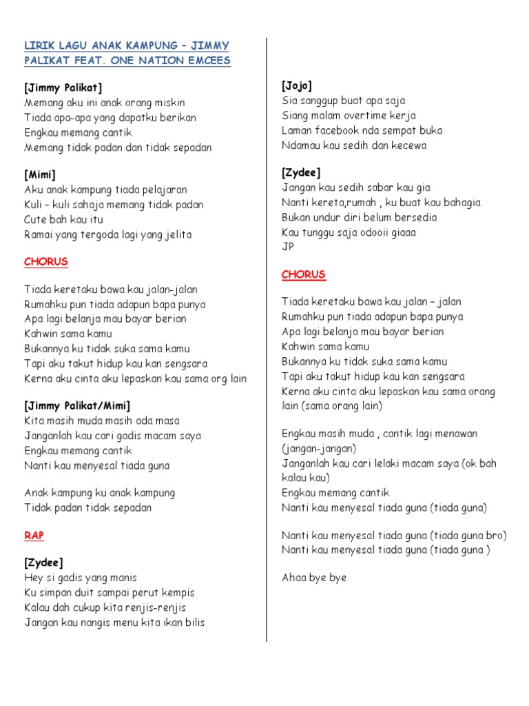 Lirik Lagu Anak Kampung