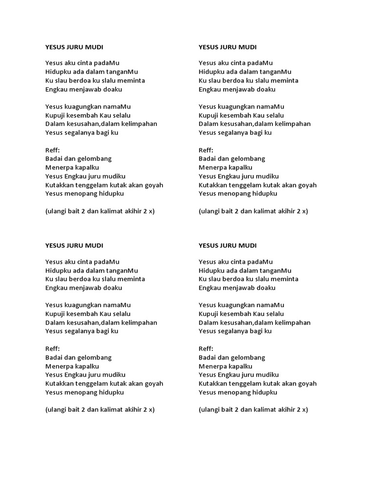 Lirik Lagu Pujian Rohani Kristen Sekolah Minggu Gereja Tuhan Yesus Yesus Aku Cinta Padamu