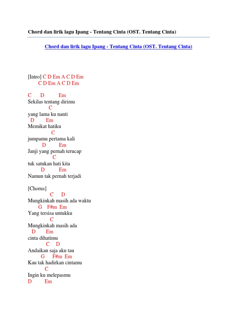 Chord Dan Lirik Lagu Ipang Tentang Cinta Ost Tentang Cinta