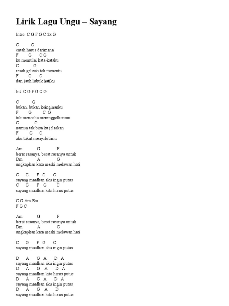 Chord Gitar Lagu Ungu Sayang Maafkan Chord Gitar Lagu Lagu Kenangan