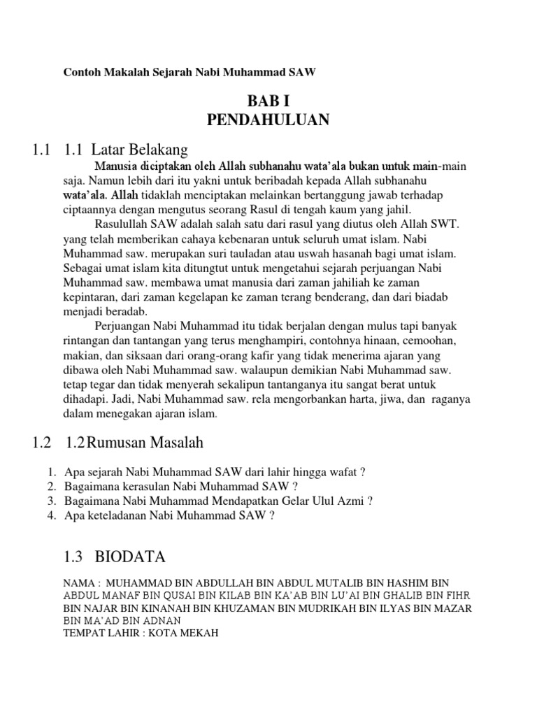 Doc Makalah Sejarah Hidup Nabi Muhammad Saw Des9 Bab I Pendahuluan Mayyadah Azis Academia Edu