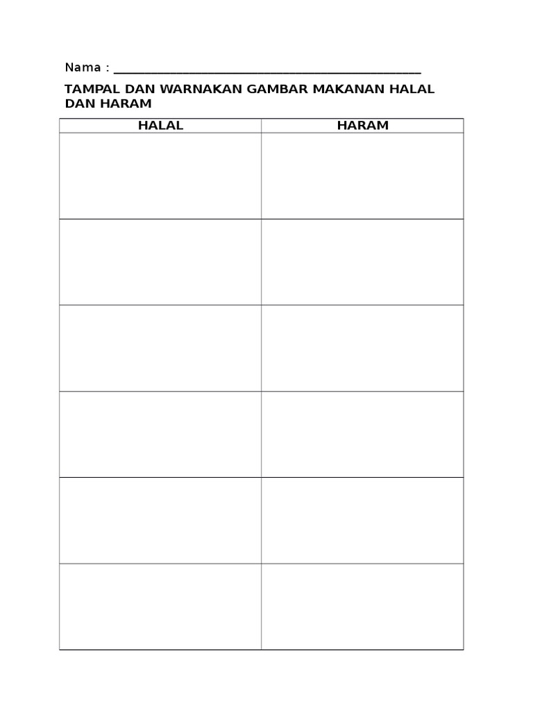 Lembaran Kerja Pi Tg1 Makanan Yang Halal