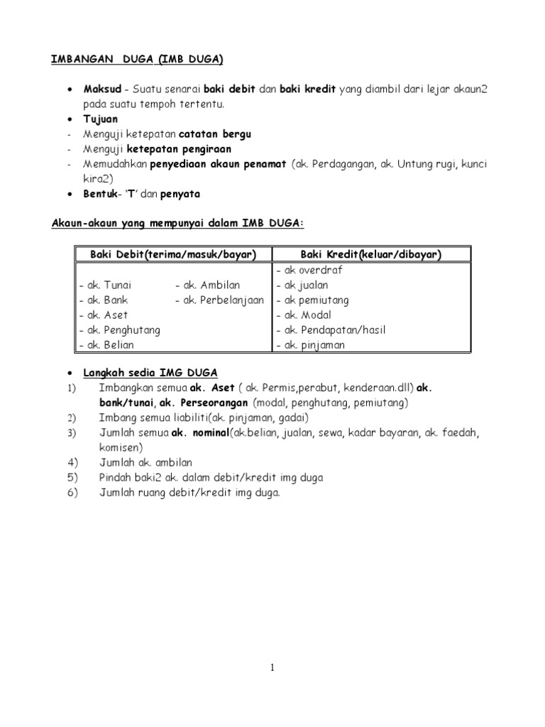 Dalam perakaunan apabila disebut debit atau kredit lebih membawa pengertian kepada dimana catatan akaun dilakukan. Oleh sebab akaun tersebut dikeluarkan daripada lejar am maka imbangan duga tidak seimbang. Dengan itu akaun kawalan yang mewakili semua penghutang dan pemiutang perlu disediakan dalam lejar am untuk membolehkan imbangan duga disediakan.