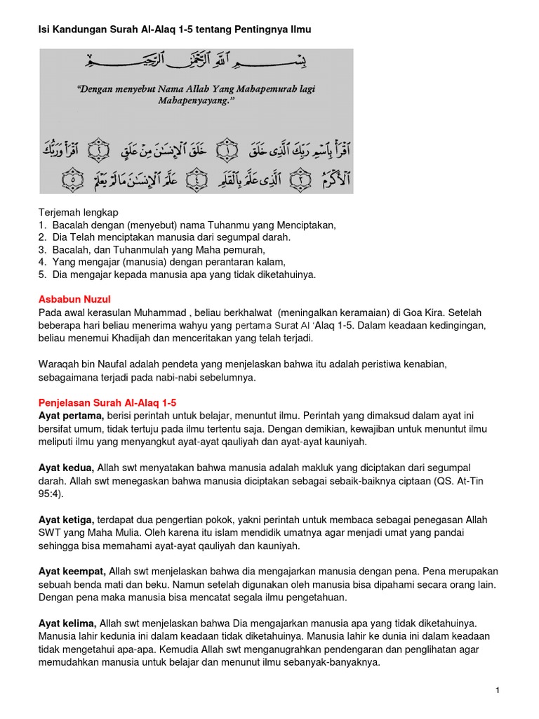 Isi Kandungan Surah Al Alaq 1 5 Tentang Pentingnya Ilmu