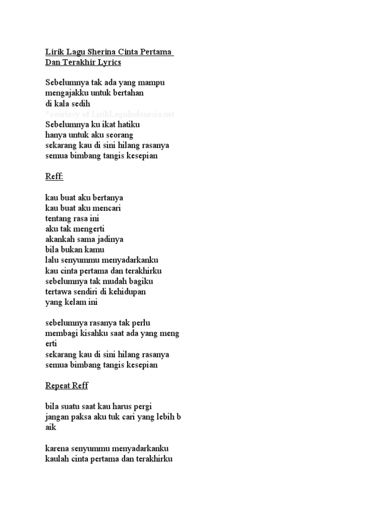 Lirik Lagu Sherina Cinta Pertama Dan Terakhir Lyrics