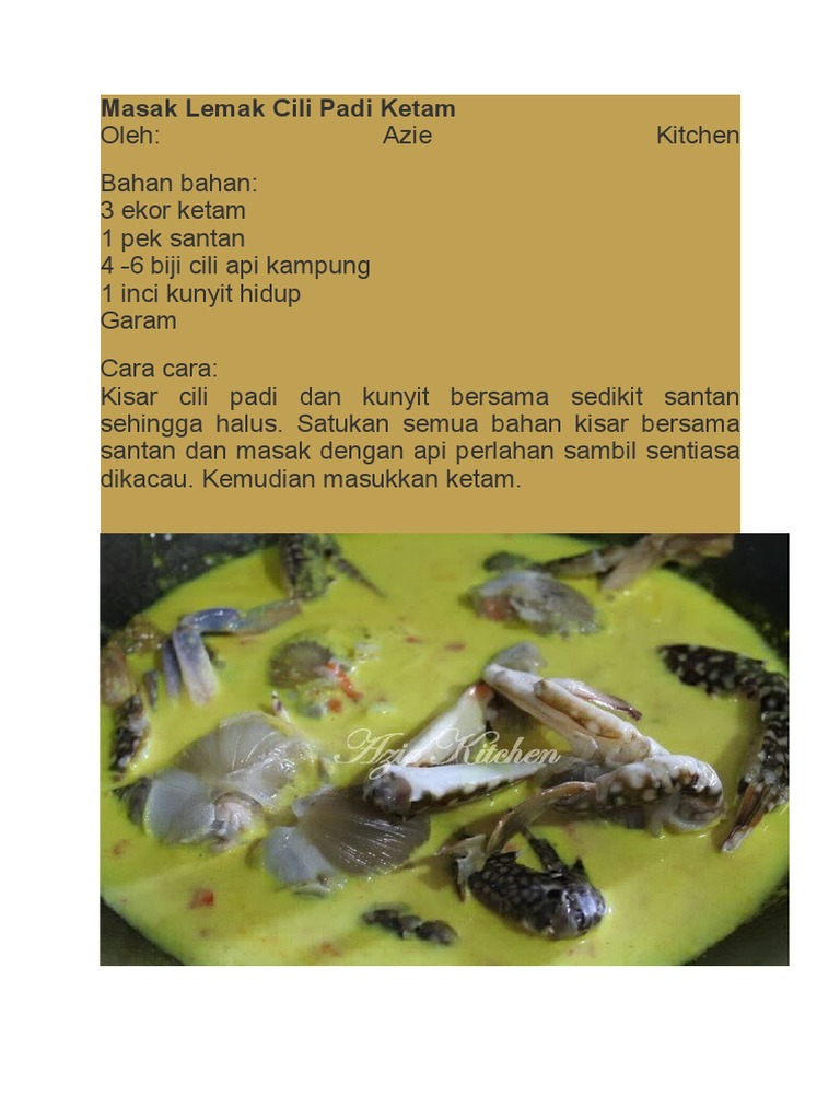 Masak Lemak Cili Padi Ketam Resepi Di Azie Kitchen Blogger Facebook