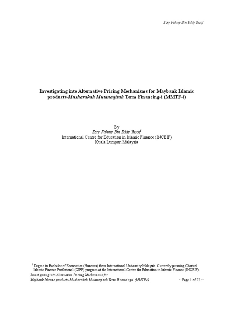 Investigating Into Alternative Pricing Mechanisms For Maybank Islamic Products Mmtf I Islamic Banking And Finance Interest