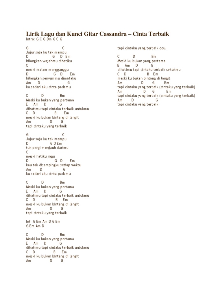 Cassandra Cinta Terbaik Lyrics Chord Gitar Song Lyrics