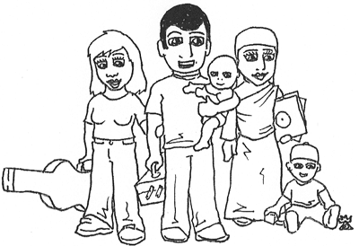 Mewarna Gambar Keluarga Bahagia Hitam Putih